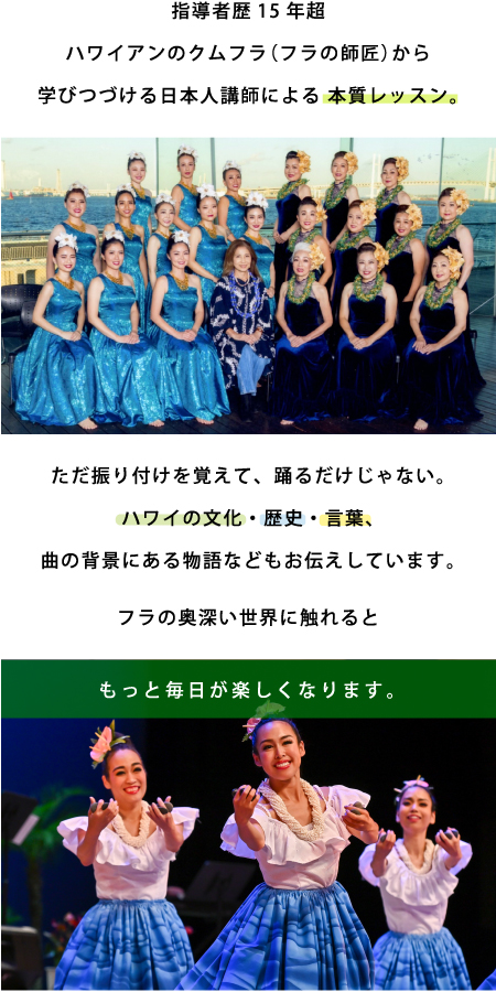そんなあなたに、もっとフラの奥深い魅力を知っていただけるレッスンをご提供することをお約束します。